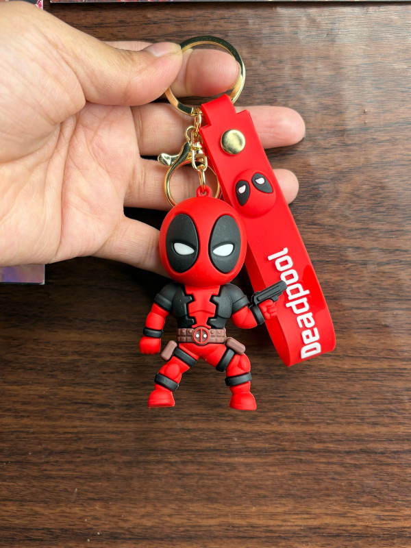 Add a touch of attitude and style to your everyday essentials with this Deadpool action figure keychain. Designed with a cute yet detailed look, this mini superhero figure is perfect for fans who love bold and unique accessories.