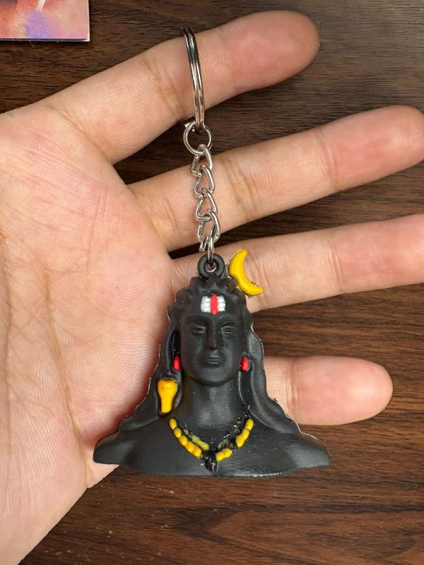 Carry divine energy wherever you go with this beautifully crafted Lord Shiva (Mahadev) keychain. Designed with a sleek black matte finish, this keychain features intricate detailing of Shiva’s serene face, complete with the iconic tilak, crescent moon, and rudraksha-style elements.